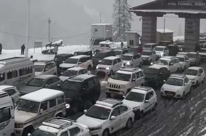 मनाली हिमाचल प्रदेश में भारी बर्फबारी के कारण प्रशासन ने नेहरू कुंड से साउथ पोर्टल तक अटल टनल...