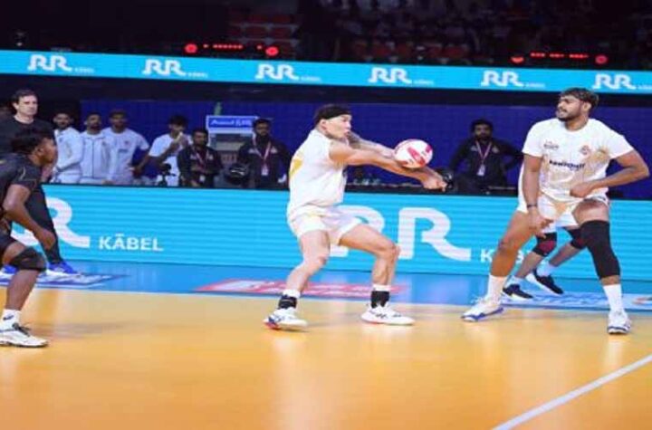 हैदराबाद आरआर केबल प्राइम वॉलीबॉल लीग पावर्ड बाय स्कैपिया मुकाबले में अहमदाबाद डिफेंडर्स ने गत चैंपियन कालीकट हीरोज को 12-15,...