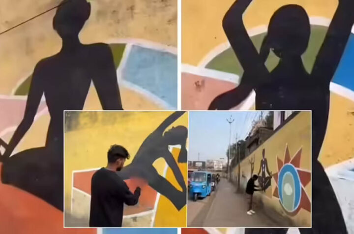 ग्वालियर शहर में स्मार्ट सिटी पहल के तहत बनाई गई महिलाओं की योग करती हुई पेंटिंग को कुछ आसामाजिक तत्वों...