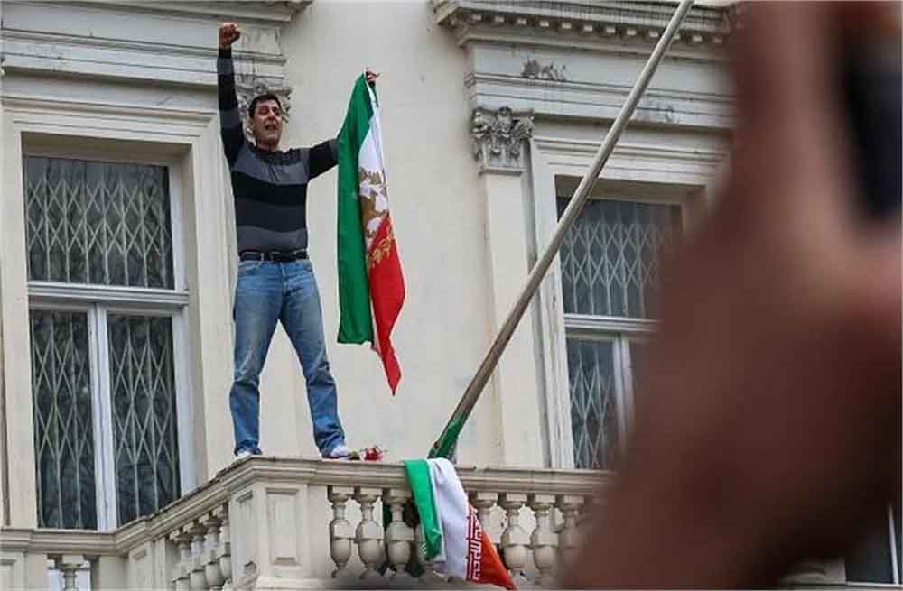 ईरान विरोध की चिंगारी यूरोप तक पहुंची, ब्रिटेन में प्रदर्शनकारी ने दूतावास का झंडा फाड़ा