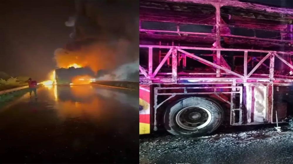 आंध्र प्रदेश के कर्नूल जिले के चिन्ना टेकुरु गांव में शुक्रवार तड़के एक भीषण सड़क हादसे में कम से कम 20 लोगों के जिंदा जलने की पुष्टि हो चुकी है। यह आंकड़ा अभी बढ़ सकता है। घटना उस समय हुई जब कावेरी ट्रैवल्स की एक प्राइवेट बस हैदराबाद-बेंगलुरु हाईवे पर एक बाइक से टकरा गई, जिसके बाद बस में आग लग गई। प्रत्यक्षदर्शियों के मुताबिक, बस कुछ ही मिनटों में आग की लपटों में घिर गई। हादसे के समय बस में 44 यात्री सवार थे। 12 यात्री किसी तरह बाहर निकलने में सफल रहे, जबकि बाकी लोग बस के अंदर फंस गए।