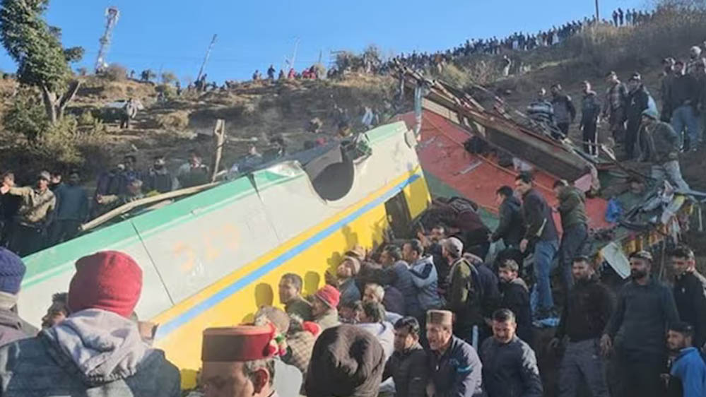 हिमाचल के हरिपुरधार में खाई में गिरी प्राइवेट बस, 7 की मौत, 50 घायल