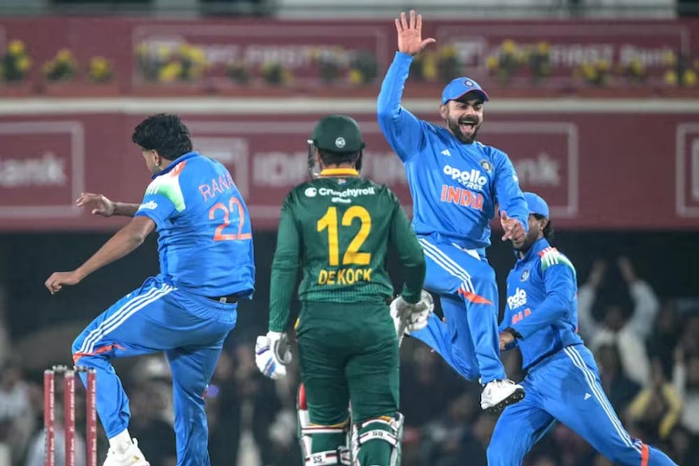 350 रनों के जवाब में जब साउथ अफ्रीका की टीम उतरी तो पारी का दूसरा औ अपने खाते का पहला ओवर लेकर हर्षित राणा आए. उन्होंने इस ओवर में अफ्रीका को दो बड़े झटके दिए. रयान रिकल्टन और क्विंटन डिकॉक अपना विकेट गंवा बैठे. यानी हर्षित ने साउथ अफ्रीका को ठोस शुरुआत नहीं करने दी. इसके बाद 5वें ही ओवर में अर्शदीप ने मार्करम को चलता कर दिया.