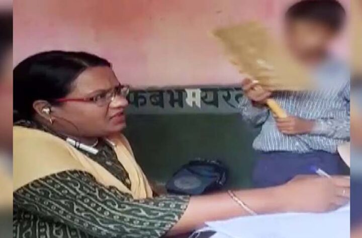 कान में ईयरफोन और हाथ में मोबाइल, मासूम छात्र से मैडम बोलीं- पंखा करो; वीडियो हुआ वायरल