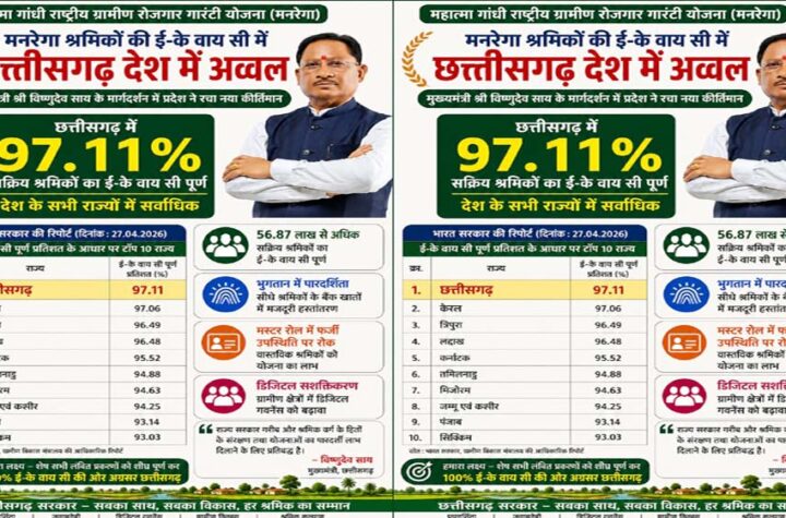 मनरेगा श्रमिकों की ई- के वाय सी में छत्तीसगढ़ देश में अव्वल